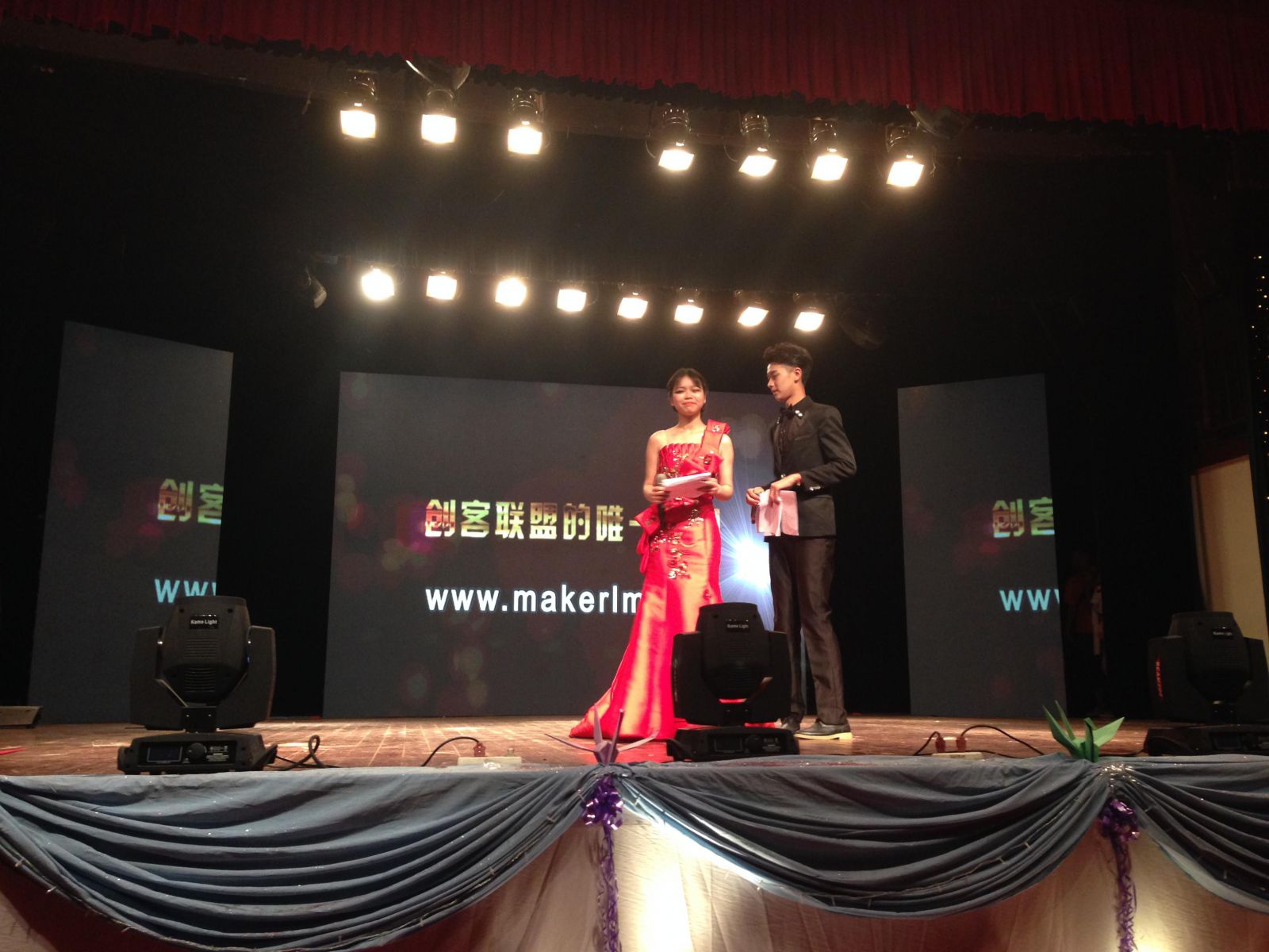 6月是畢業(yè)季,初盛的武漢已經(jīng)酷署難耐,在湖北工業(yè)大學的大講堂有一群青春陽溢的大學生正在用他們的熱情向自己的母校say—goodbye。這是一場完全由湖工大的藝術設計系的同學自導自演的畢業(yè)晚會,合作方是創(chuàng)客聯(lián)盟。作為合作方的嘉賓代表本人很榮幸參與并見證了這場并不高大上但會讓人記住一輩子的晚會。晚會中有幾個鏡頭是回顧一群老師在課堂中與學生上課的情景,特別是當主持人說到我們就這樣畢業(yè)了,四年大學,我們就這樣走完了,攝影師用鏡頭拍到不少同學眼睛開始微微濕了。